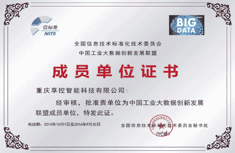 全國信標(biāo)委批準(zhǔn)重慶享控智能科技有限公司為“大數(shù)據(jù)標(biāo)準(zhǔn)工作組全權(quán)成員單位”